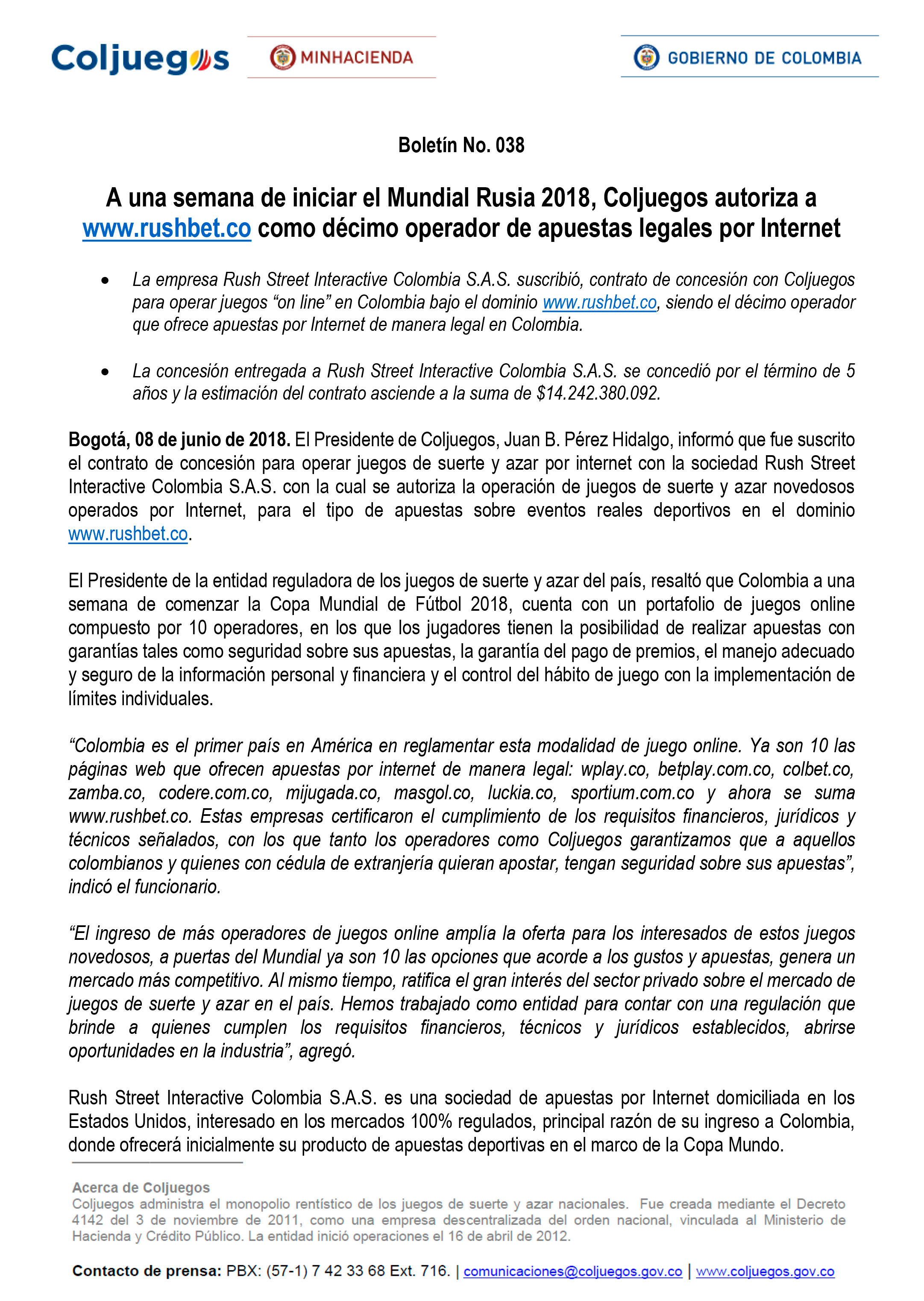Fima décimo Operador - Rushbet.com